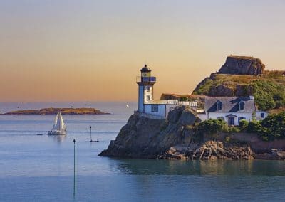 Pour ce périple à vélo sur la Route des Phares, Rendez-Vous à Brest ! Incontournable ville du Finistère, cité maritime par excellence, Brest est devenue une ville dynamique tout en restant authentique. Située au cœur d’une des plus belles rades de France, prenez le temps de visiter la ville, à pied, à vélo en bus, en tram ou même en téléphérique pour rejoindre le nouvel écoquartier des Capucins… De l’impressionnant pont de l’Iroise, vous pouvez vous balader le long des quais animés jusqu’au château de Brest, en passant par le musée national de la Marine, et découvrez aussi Océanopolis le monde sous marin du monde entier.
