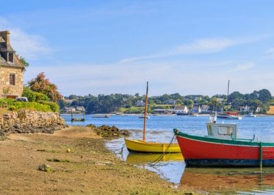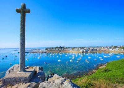 Vous pédalez le long du littoral en passant par le port d’Argenton, la plage houleuse de Penfoul, la chapelle de Saint-Samson. Au large, vous apercevez l’ile Melon et le phare du Four avant d’arriver à Portsall. Au-dessus de Portsall se trouvent trois monuments incontournables du site classé monument historique des mégalithes de Guilliguy : une allée couverte, un menhir et une croix. Découvrez ce site avant de rejoindre le bras de mer d’Aber Benoit et d’arriver à l’étape du jour, Landéda.