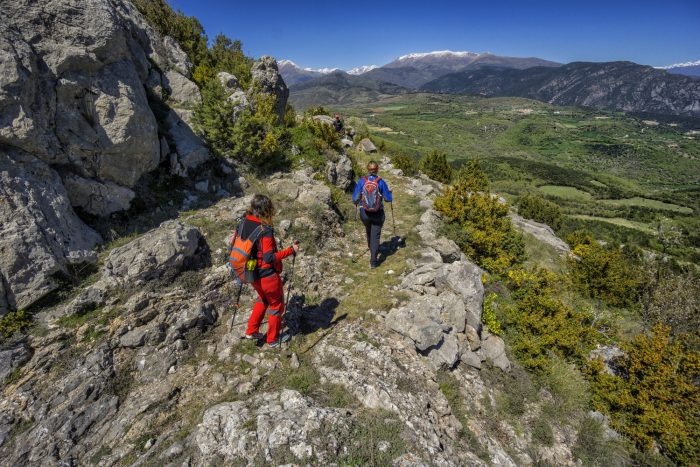 Etape 1 : La géante endormie : départ de La Pobla de Segur pour une randonnée jusqu’à Peramea. Vous marchez 1 km sur la N260 avant de rejoindre l’ancien chemin de Montsor qui mène sur d’anciens chemins de pierre et des tronçons creusés dans la roche. De superbes points de vue jalonnent votre étape du jour : Montsor et ses zones rocheuses avec des vols de rapaces, le barrage de Sant Antoni, la longue cordillère du Monstec… A votre arrivée au col de Montsor, vous suivez un petit sentier qui mène à la ferme de Peracalç, vous traversez le village et arrivez à la montagne de Peracalç. Possibilite de monter jusqu’au Pic de l’Aigle. Après avoir profité des magnifiques vues, vous descendez vers la Plaine de Corts par le village de Cortscastell. La journée de termine à Peramea, une ville close médiévale importante.