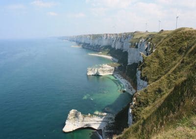Montée libre au Cap Fagnet par la sente aux Matelots, plus haut point des falaises de la Côte d’Albâtre pour profiter d’un panorama exceptionnel sur la ville, la mer et les falaises. Ce site fait parti du réseau Grands Sites de France « Falaises d’Etretat, Côte d’Albâtre ».