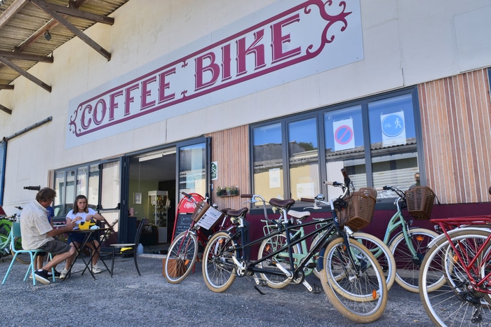 Récupération des bagages à l’Office de Tourisme et des vélos électriques.