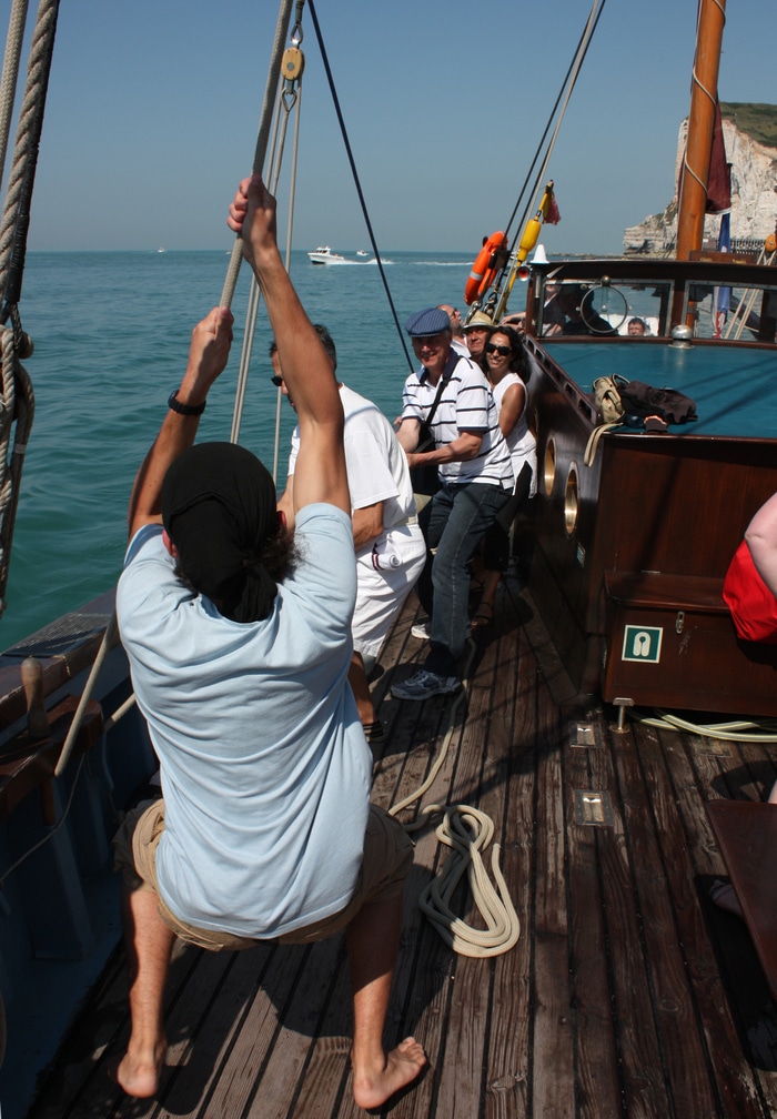 Ce matin, vous retournez à Fécamp à vélo jusqu’à l’Office du tourisme (15 mn/6 km) où vous laissez les vélos. Vous sortez en mer à bord d’un vieux gréement pour une découverte inédite des falaises de la Côte d’Albâtre. Une expérience inoubliable, dans la peau d’un matelot de ces anciens bateaux de pêche, magnifiquement restaurés. Vous hissez les voiles pour une sortie d’environ deux heures ; C’est le vent qui vous emportera en direction de Saint-Pierre-en-Port, ou d’Yport.