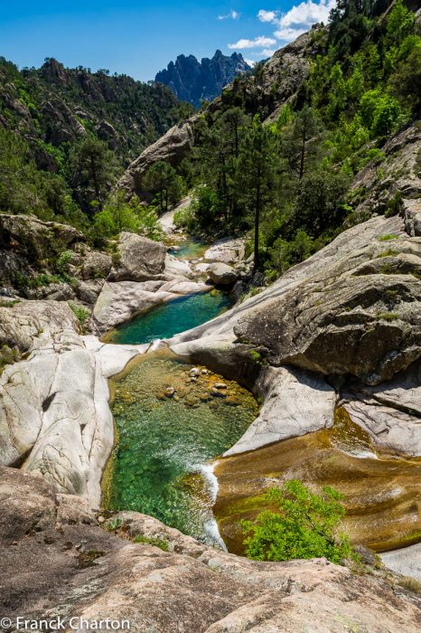 Cheminement dans le vallon de la rivière du Manganellu qui longe le GR20. Parsemée de cascades et piscines naturelles, cette partie d’itinéraire est un véritable appel à la baignade dans les eaux limpides de l’île. Vous pouvez également passer par « I Pinzi Corbini » une variante dans les crêtes.