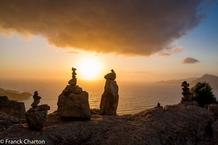 Votre parcours du jour vous emmène jusqu’à l’arête des statues que vous longez. Les paysages atypiques de la Corse se dévoilent à vous entre blocs de granit écharpés par le vent et la mer au loin.