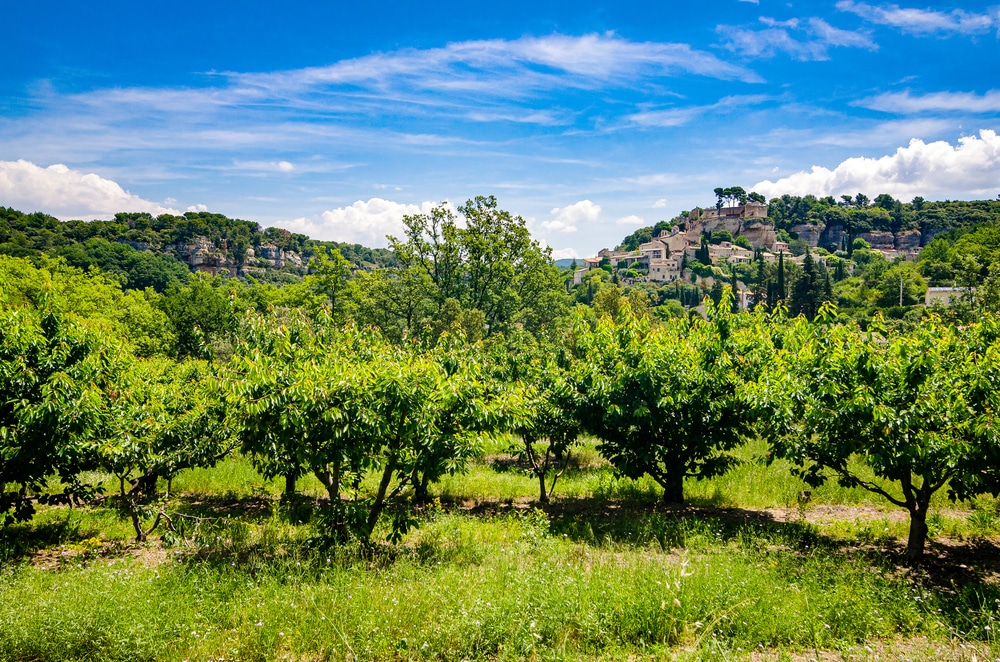 Le départ de ce voyage à vélo est Cavaillon, une belle bourgade de Provence située en bord de Durance. Pour commencer, vous pouvez visiter les deux principaux monuments religieux: la cathédrale Saint-Véran et la synagogue, chef-d’oeuvre de l’art contadin du XVIIIème siècle. Vous prenez ensuite vos vélos pour suivre la piste cyclable jusqu’à Robion, un petit village provençal pittoresque avec une place ombragée de platanes, une fontaine, les ruines d’un château féodal et une chapelle perchée sur le rocher.