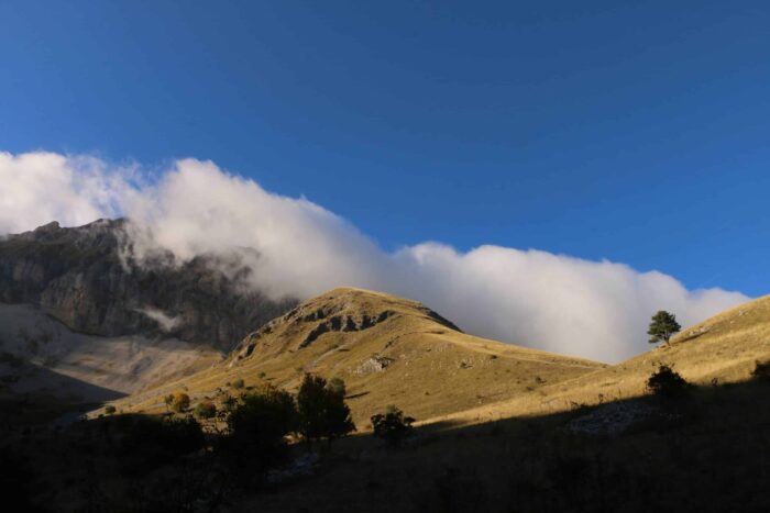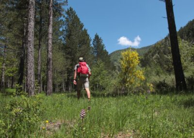 C’est l’étape la plus longue et probablement la plus variée avec les cols de Matacharre et Conode par un magnifique sentier en balcon. Passage par la chapelle de la Crotte, vestige d’un ancien couvent monial. Traversée de mélézins et d’alpages, passage sous l’impressionnant et prestigieux pilier de Bure (plus haute falaise calcaire d’Europe). Accès au village en ruine de Chaudun par les gorges du Petit Buëch, aux vasques rafraîchissantes et par une forêt inscrite au Patrimoine Mondial de l’Unesco pour ses arbres remarquables et sa richesse faunistique et floristique.