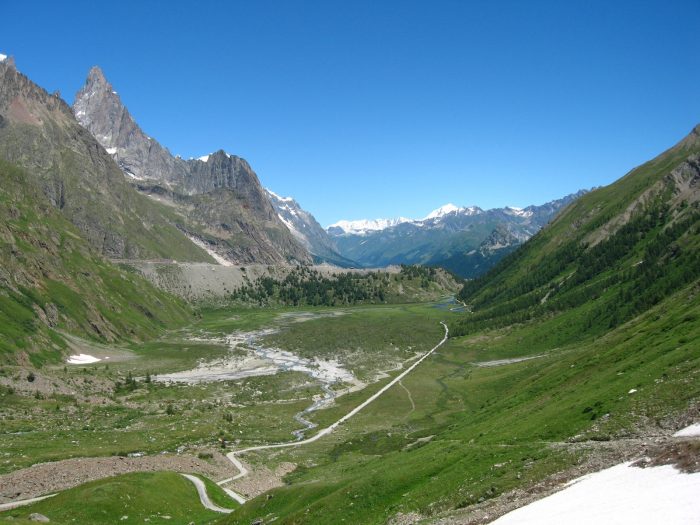 En grimpant le col de la Seigne, bénéficiez d’une vue imprenable sur les glaciers du Massif pour une superbe randonnée franco-italienne. La vue sur les Aiguilles de Peuterey culminant à 4112m procure cette folie des grandeurs tant convoitée pour une journée en haute montagne revigorante ! Vous passez au choix : une nuit en hôtel confortable à Courmayeur ou en version rustique au charmant refuge Elena.