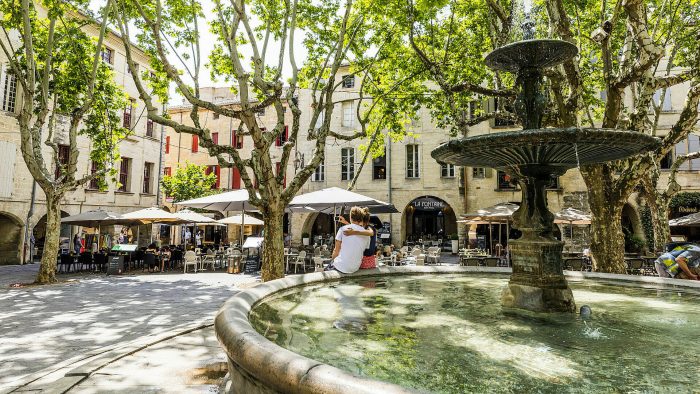 C’est l’étape la plus longue du parcours mais très roulante ; Vous partez d’Anduze et suivez le Gardon en direction d’Uzès, une magnifique cité ducale. Premier arrêt à la poterie de la Madeleine ou huit poteries perpétuent la tradition de production de grands vases à décors de guirlandes depuis 1610. Continuation vers les bourgs viticoles de Lézan, puis Cardet, pour retrouver le Gardon et entamer un parcours sur piste au niveau du lieu-dit « du chercheur d’or ». Après avoir quitté les champs de fruitiers et d’asperges, cap sur le spectaculaire village médiéval perché et magnifiquement restauré : Vézenobres. Pour avoir un superbe panorama, grimpez jusqu’à la table d’orientation du village ! Vous pédalez ensuite vers la rivière Droude où vous pouvez faire un arrêt pour visiter un moulin à huile. Puis, par un paysage viticole vallonné, vous rejoignez Uzès, avec sa place aux herbes et ses arcades, ses ruelles et hôtels particuliers des 17ème et 18ème siècles, témoignage d’un riche passé de cette petite ville commerçante.
